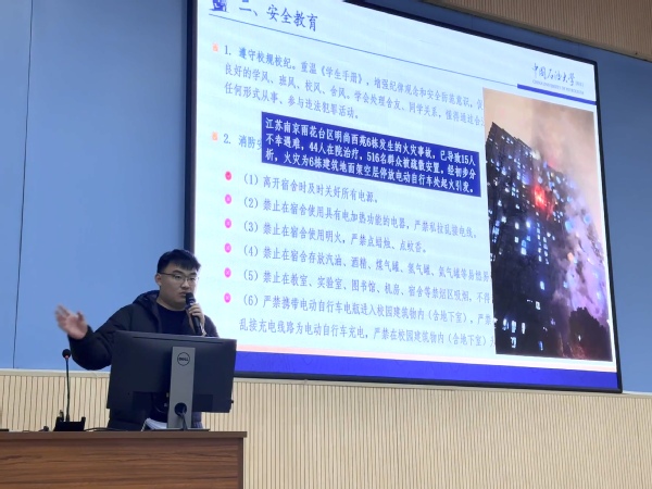 焦佳奇总结了2023级本科生第一学期的期末考试成绩情况,并从学风建设、安全教育、日常管理、新学期新目标四方面对员工提出要求。他寄语员工,春光美如斯,正是读书时。勉励员工珍惜时间,在书香中谱写青春之歌。