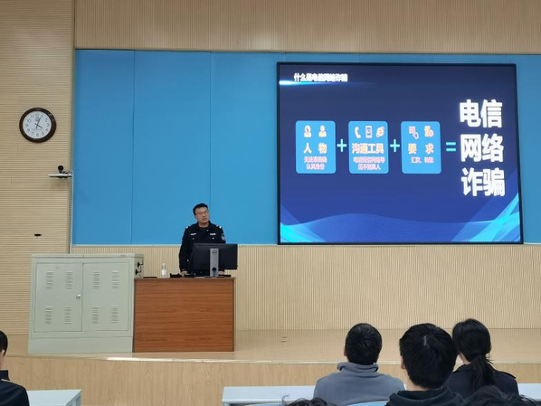 李润成警官进行了反诈知识宣讲,进一步提高在校员工对电信网络诈骗的甄别能力,增强员工电信网络诈骗防范意识。