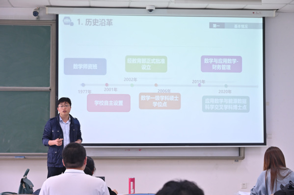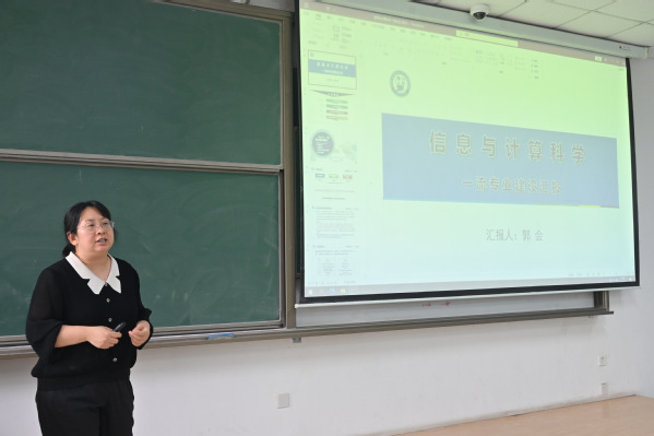 张建松详细介绍了数学与应用数学系的相关信息,包括教师团队、生源质量、毕业生质量以及该专业在国内排名等方面的情况。他还展示了该系近年来深化专业综合改革所取得的成果,强调了专业的优势特色和竞赛教学研究方面的丰硕成果。郭会老师重点讲解了信息与计算科学系的专业定位,概括了该专业的特色优势,为同学们展示了信息与计算科学系的专业魅力。