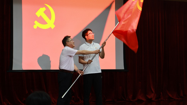 杨辉为毕业生党员授党旗启航出征,他勉励毕业生党员:一是不走捷径,要行得正走得直,在人生的康庄大道上行稳致远;二是打好人生的“五张牌”,珍惜当下的青春时光,勇敢迈向下一个阶段;三是至少培养一项终身受益的兴趣爱好,担当作为的同时不负美好年华。