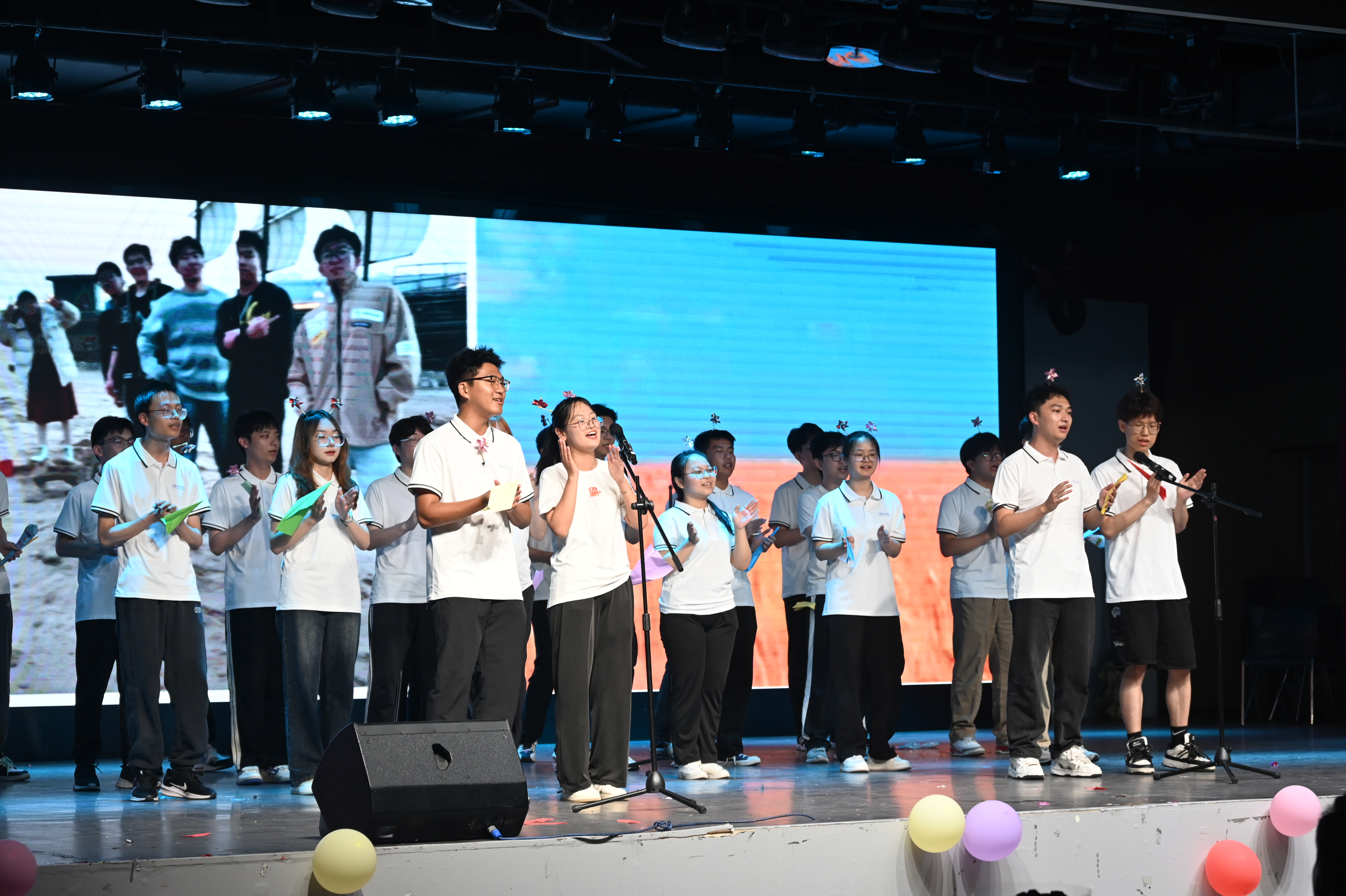第二篇章“致未来”展现毕业生们扬帆起航,对美好未来的向往与期盼。精彩的舞台剧、充满活力的人偶表演、悠扬动听的歌曲表达了毕业生对美好的追求,激励他们勇敢面对未来的挑战,不忘初心,砥砺前行。由辅导员高旭献唱的歌曲《一生中最爱》让离别与不舍都化作音符融进旋律,在歌声中铭记这个花开的盛夏,也祝愿毕业生们往后人生道路宽广,途经的每一个夏天,都草木葱茏、满目生机。