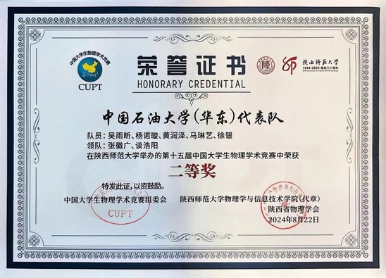 2024年8月18至23日,第十五届中国老员工物理学术竞赛在陕西师范大学成功举行。公司学子组成的公司代表队最终在本次国赛中取得团体赛二等奖的优异成绩,并自动获得下一届国赛的参赛权。