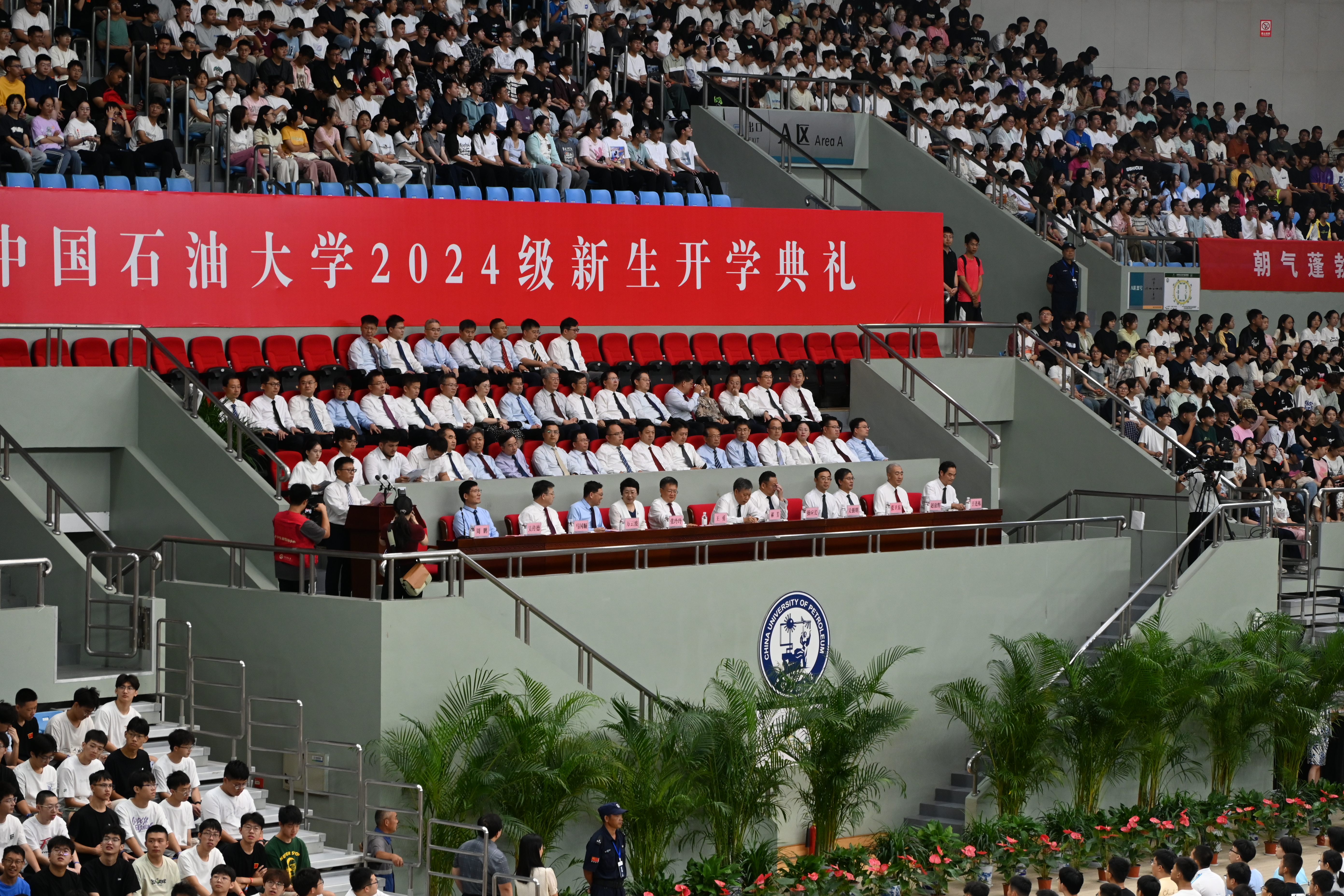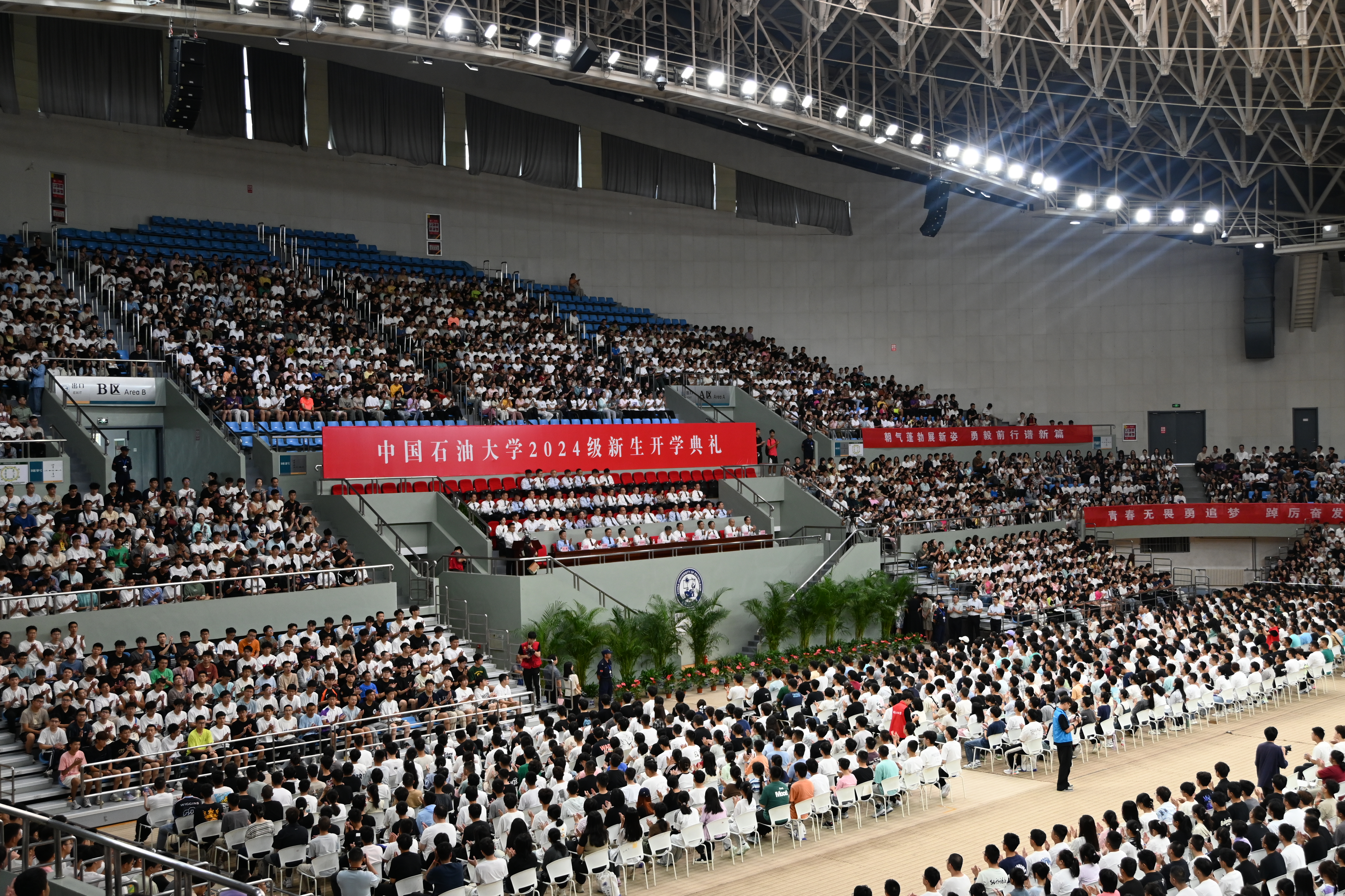 9月3日上午八点,2024级新生开学典礼于体育馆举行。全校9000多名新生参会。伴随着庄严的国歌,开学典礼正式开幕。本科生、研究生、职工新生代表分别发言,表达了作为石大新生的自豪感和对未来的期待。在校生和教师代表也发表了情感深厚的讲话,对公司的培育表示深深的感激。