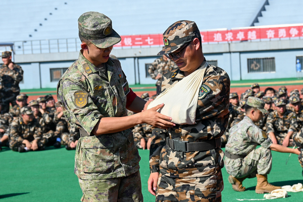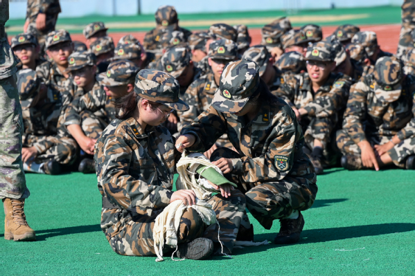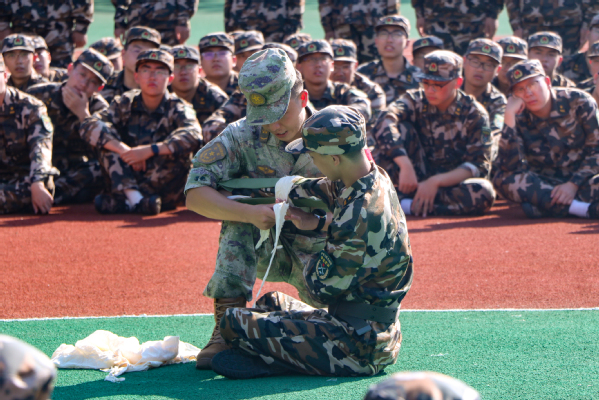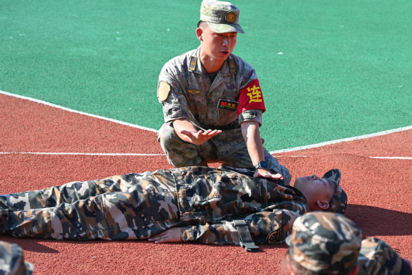 9月4日,十三营的新生们投入到了包扎和救护技能实训中,让新生能够更有针对性地面对应急突发情况。教官首先详细讲解了急救的基本原则、常见伤害类型及初步处理方法,并强调了急救的重要性。