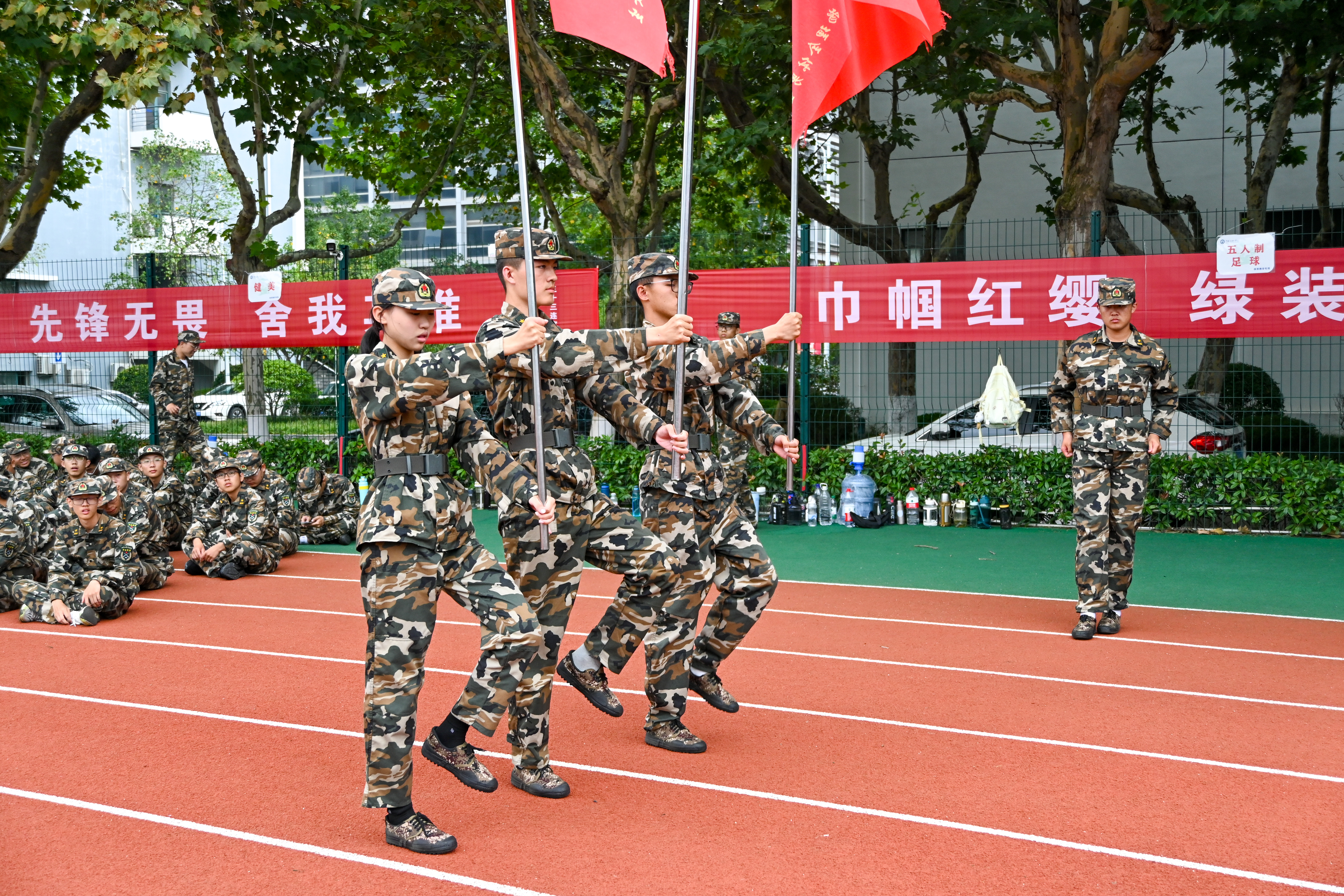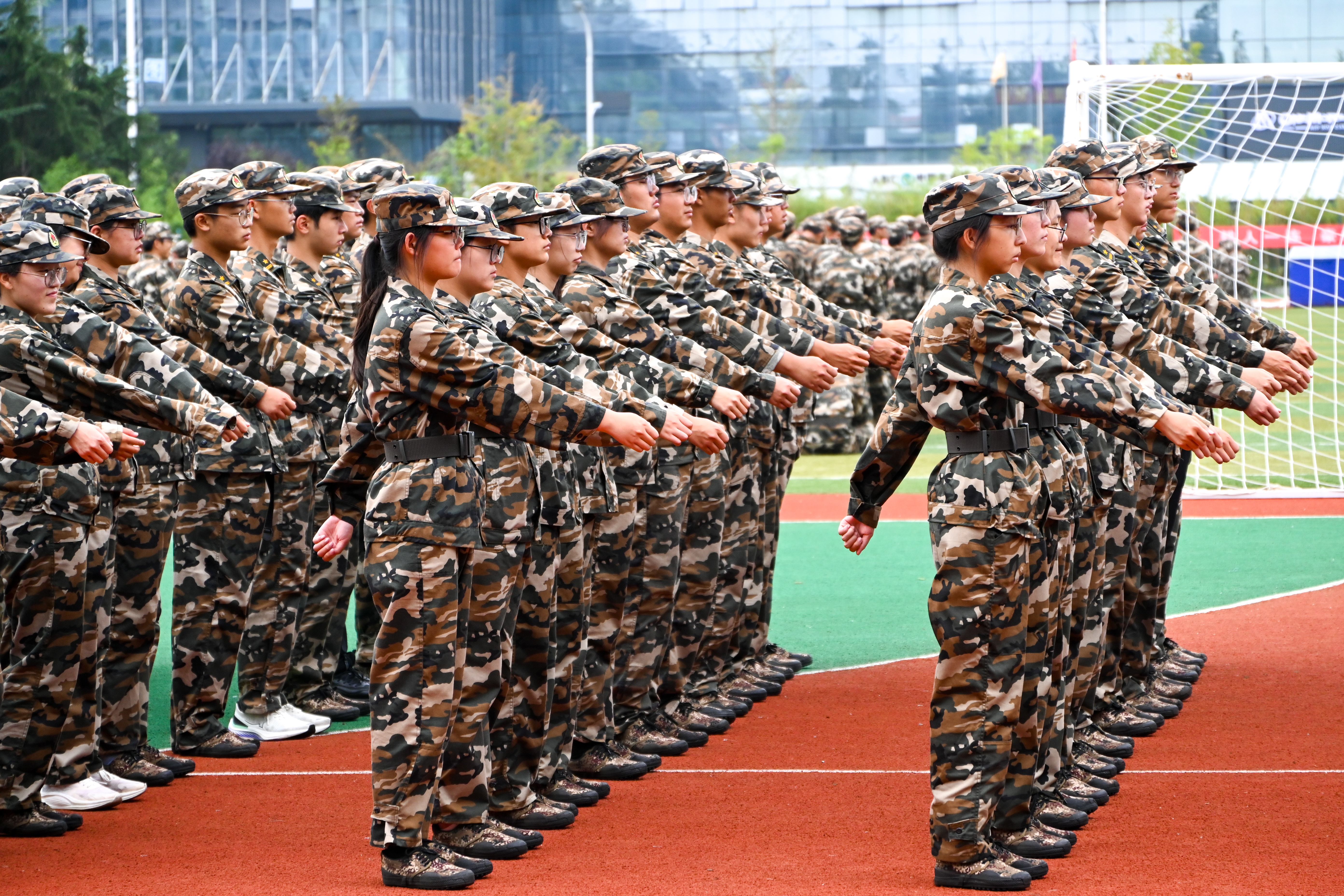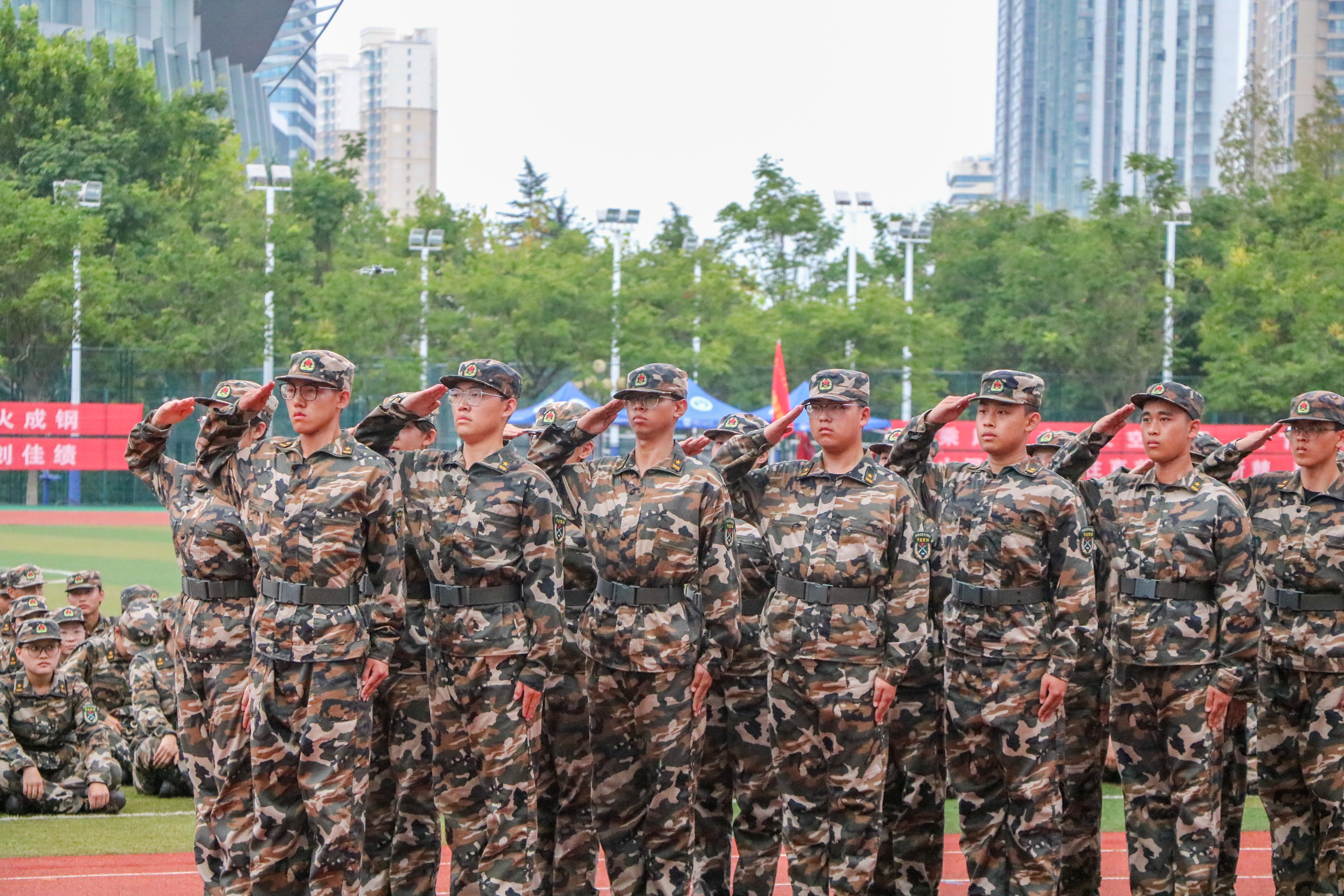 9月14日下午,方阵进一步强化了方阵排面和抬臂高度统一的训练。在教官的严格指挥下,方阵队员们刻苦训练,力求精益求精。