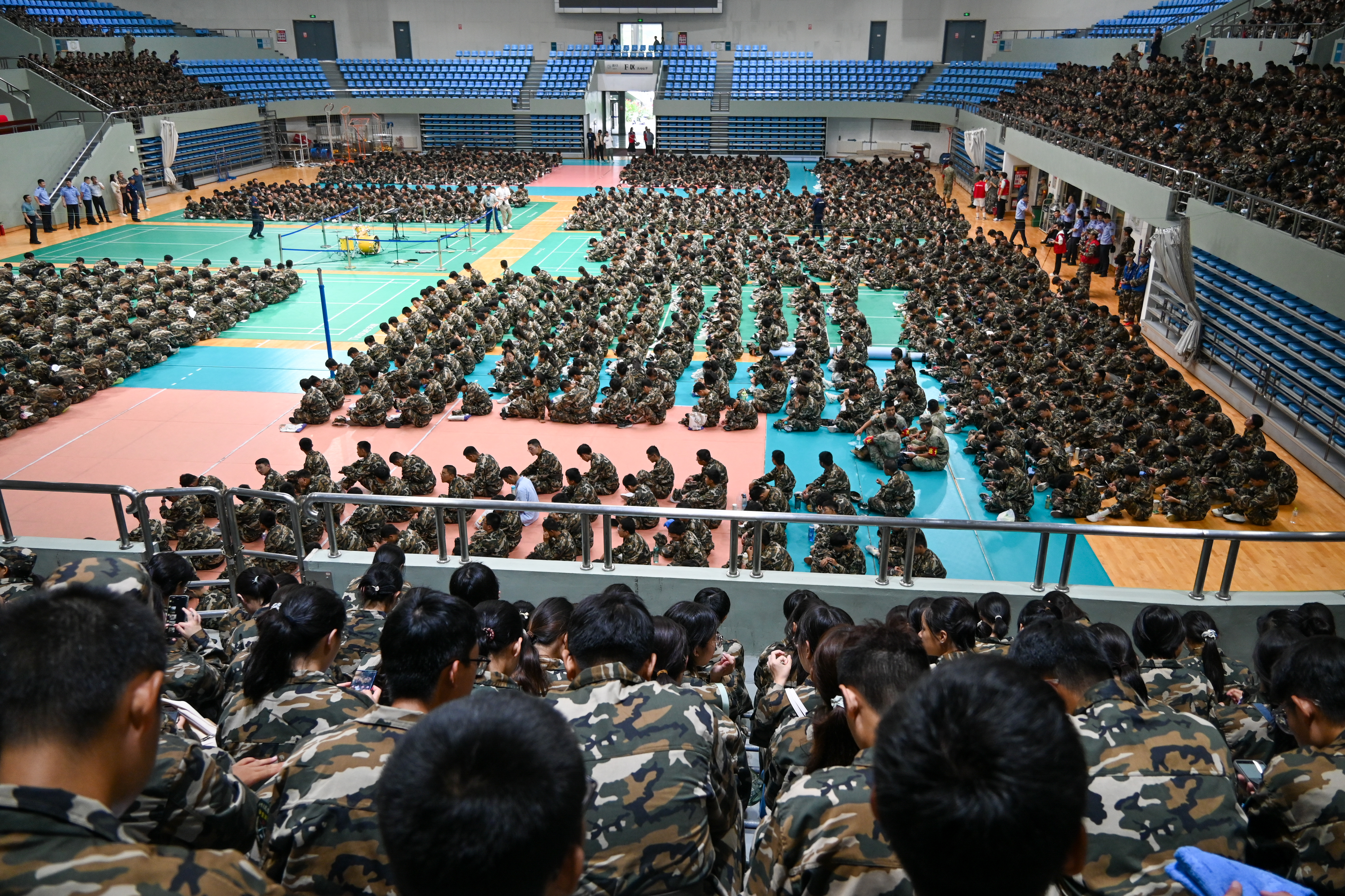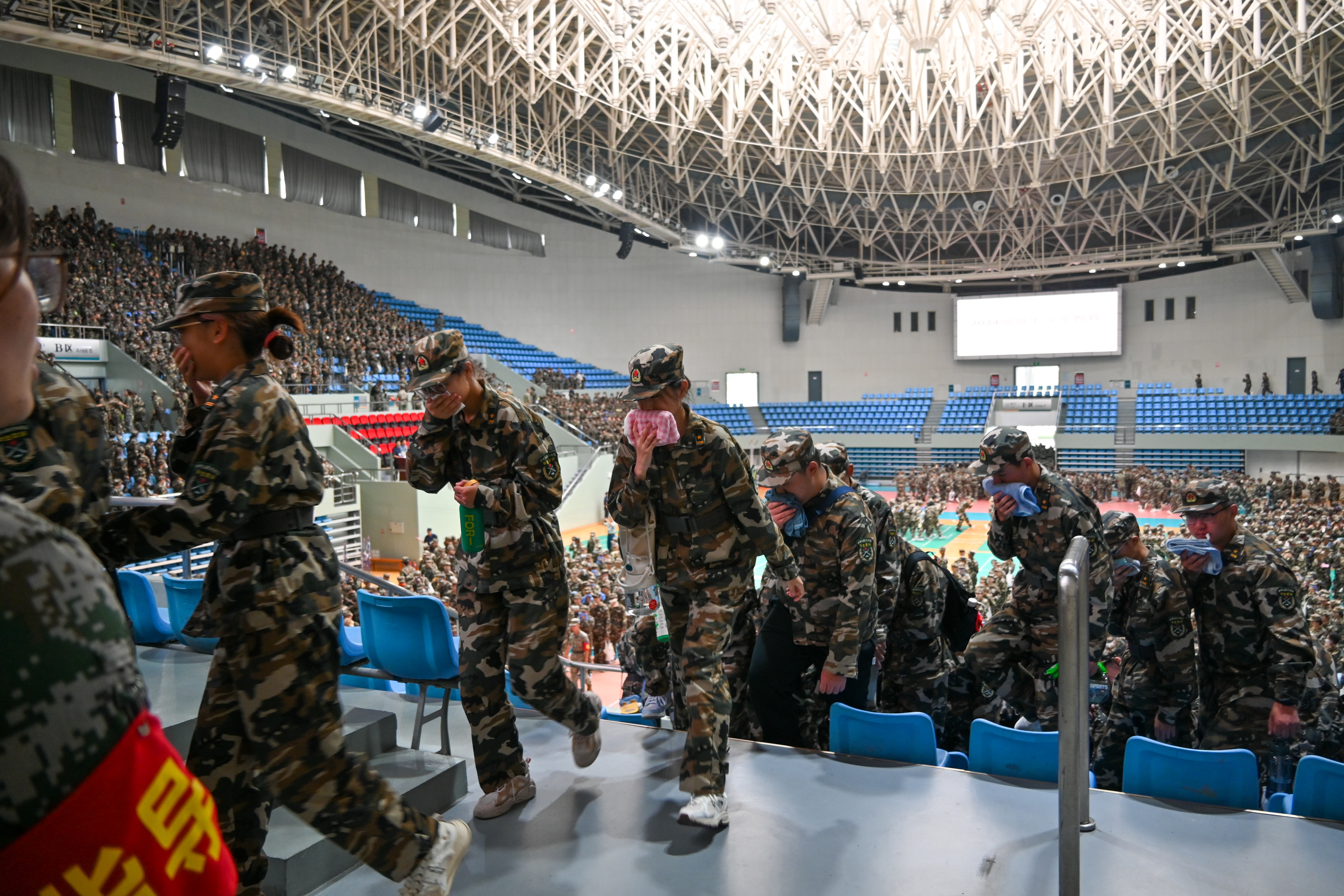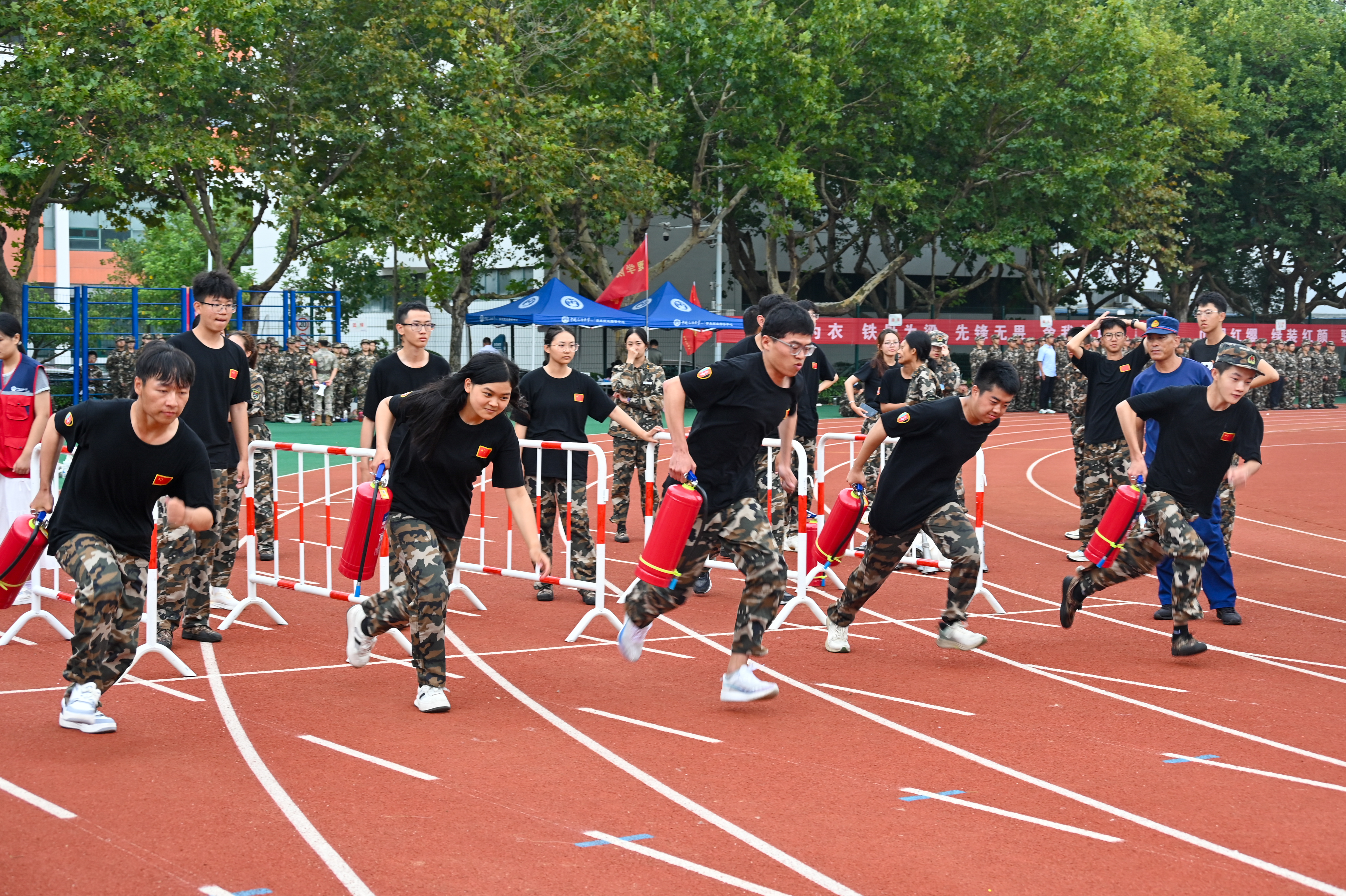 9月14日下午,方阵进一步强化了方阵排面和抬臂高度统一的训练。在教官的严格指挥下,方阵队员们刻苦训练,力求精益求精。