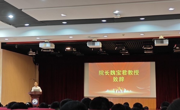 经理魏宝君教授围绕三个深刻的问题——“为什么学习?”“大学里学什么?”“大学里怎样学习、怎样做研究?”为新生致辞。一是要思考个人志向与国家使命的融合,明确学习目标;二是夯实专业基础,提升自我管理,培养合作精神;三是做到坚持勤奋,知行合一,善用工具提升学习效率。“希望大家求真学问、练真本领,度过一段充实美好的学习历程”,魏经理的这份祝福不仅是对新生的期望,更是对SUNBET申博未来发展的美好愿景。