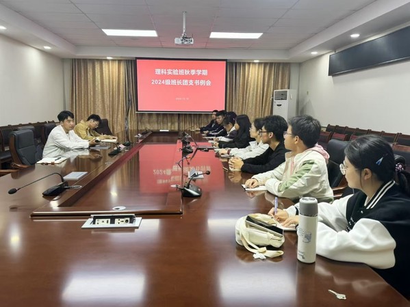10月18日晚,理科实验班于文理楼290召开2024级新学期班团例会,会议由辅导员刘威主持,兼职辅导员董朝阳、卢萌及班长、团支书参加会议。