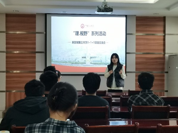 11月1日,“新加坡国立大学3+1+1”项目交流会在文理楼254举办。活动由田方老师主持,邀请到项目参与人赵飞颖进行交流分享。