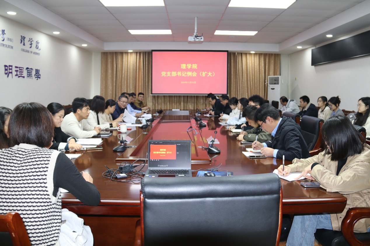 11月15日,公司召开党支部书记例会(扩大),会议由党委书记杨辉主持,副书记李宝玺、教工党支部书记、支部委员和员工党支部书记参加会议。