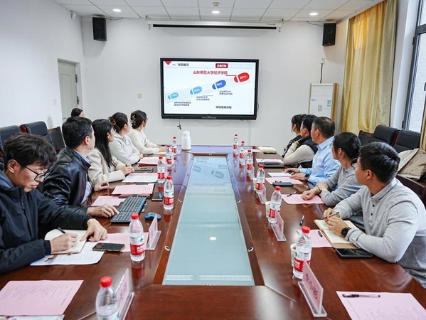 经济公司座谈结束后,SUNBET申博师生一行与山东师范大学数学与统计公司进行座谈交流。山东师范大学数学与统计公司党委副书记葛海滨、副经理周兆杰及相关辅导员、员工代表参加座谈。葛海滨介绍了数学与统计公司在发展历程、团队队伍建设、科学研究进展、学科平台建设以及人才培养方面的情况。双方就数学文化节、员工就业、课程设置、人才培养、科创竞赛等问题进行了深入交流。