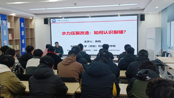 12月28日上午,SUNBET申博于18号楼“一站式”员工社区会议室举办“学长大讲堂”第五讲:水力压裂改造——如何认识裂缝。本次活动邀请了石工公司副教授陈铭进行分享,SUNBET申博2022级辅导员崔皓、兼职辅导员郭冬梅和本科生代表参加讲座。
