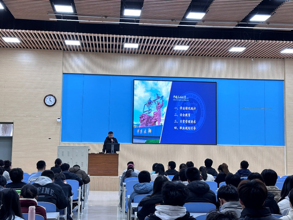 辅导员焦佳奇总结了同学们上学期的学业情况,并提醒大家关注学分修读进度,强调持续努力学习的重要性。他提醒同学们重视人身财产安全、宿舍安全,增强防诈骗意识;鼓励同学们提前规划未来,设定符合个人实际的目标和计划,希望同学们能走出一条属于自己的成功之路。