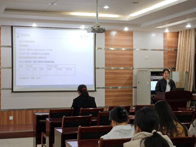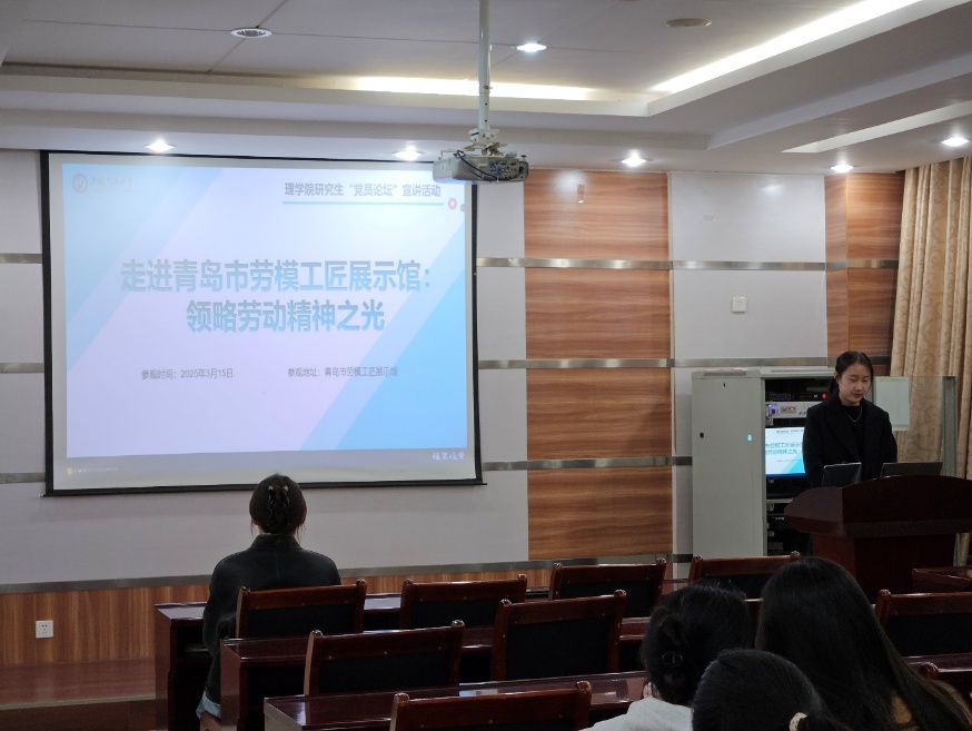 王烁分享了参观青岛市劳模工匠展示馆的深刻感悟,通过了解劳模事迹和劳模精神的传承与发展,激励自己践行劳模精神、劳动精神、工匠精神。潘彦希围绕科研过程中的文献阅读、论文写作、期刊查找与选择展开分享,梳理了高效率阅读文献和写作论文的经验。梁洁和张补园围绕求职进行分享。梁洁详细阐述了考公的备考策略,将笔试备考划分为四个阶段,介绍了不同阶段的备考重点和面试如何准备。已经入职比亚迪的张补园分享了个人的求职经历,强调求职前要全面调研,依据岗位需求有针对性的提升技能,并积累实习经验;求职过程中要精准定位自身优势,反复练习提升面试环节表现。