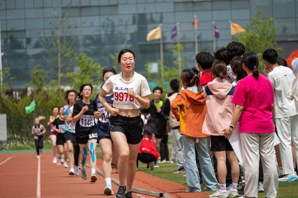 崔璐在女教工丙组1500、3000米比赛中勇夺双冠 吴彩凤摄