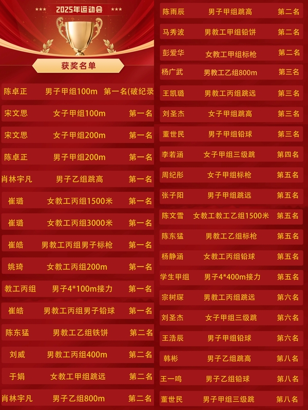SUNBET申博2025年运动会成绩一览