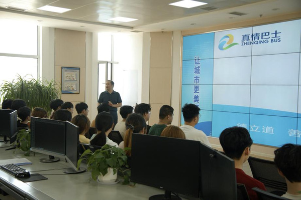 师生一行实地了解了真情巴士集团“德立道,善行远” 的文化理念,重点考察智慧公交系统建设。