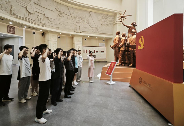 为庆祝中国共产党成立104周年,纪念中国人民抗日战争暨世界反法西斯战争胜利80周年,7月4日中午,公司党委书记杨辉、理科实验班党支部书记刘威及支部党员集体参观了“万里播火、千秋丰碑”—杨明斋革命事迹展。