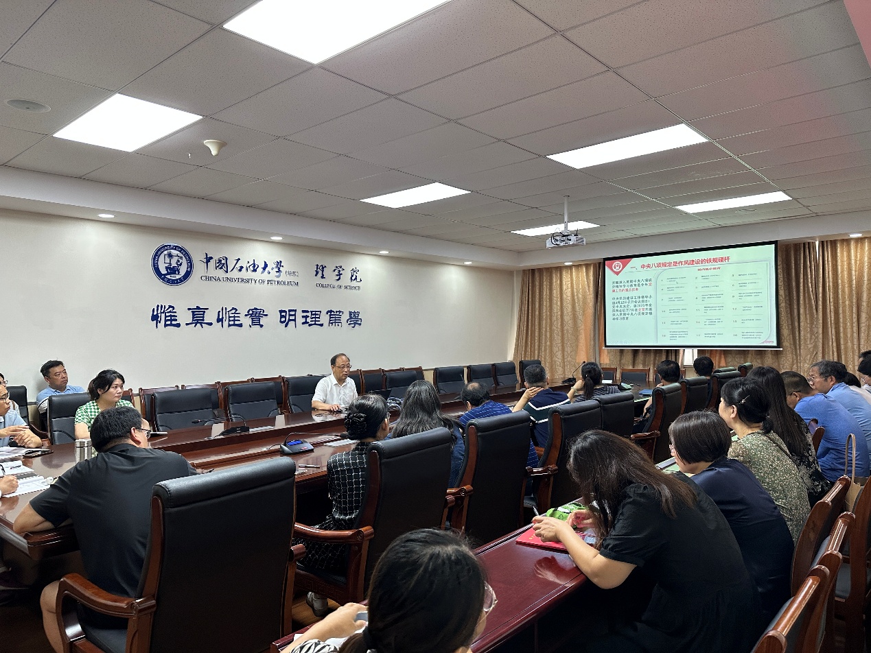 为进一步加强党员作风建设,推动深入贯彻中央八项规定精神学习教育走深走实,7月7日,基础数学系与数据科学与统计系党支部联合开展主题党日,邀请公司经理魏宝君教授为全体党员教师讲授专题党课,活动由数据科学与统计系党支部书记宋允全主持。