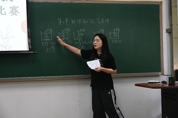 比赛分为一分钟自我介绍和八分钟模拟课堂展示两个环节。参赛选手们围绕微分求导、物理浮力等理学专业内容展开教学展示。赛后,两位评委对参赛选手进行了点评与指导,并分享了从教心得与经验。经过综合考评,王鲁楠等4名优秀选手荣获表彰。