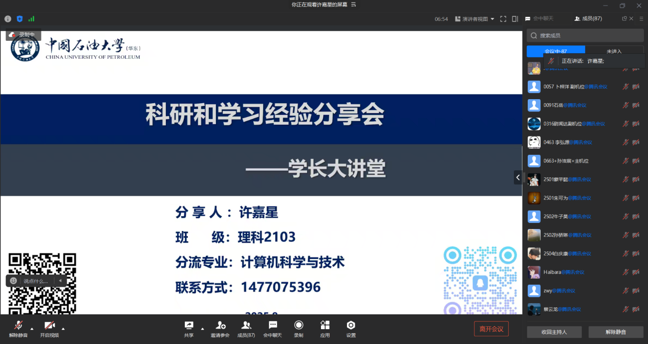 活动中,学长、学姐围绕专业学科、科研竞赛、校园生活、课外活动、实践经历等多维度展开分享,并在线解答新生疑问,助力2025级新生顺利启航。