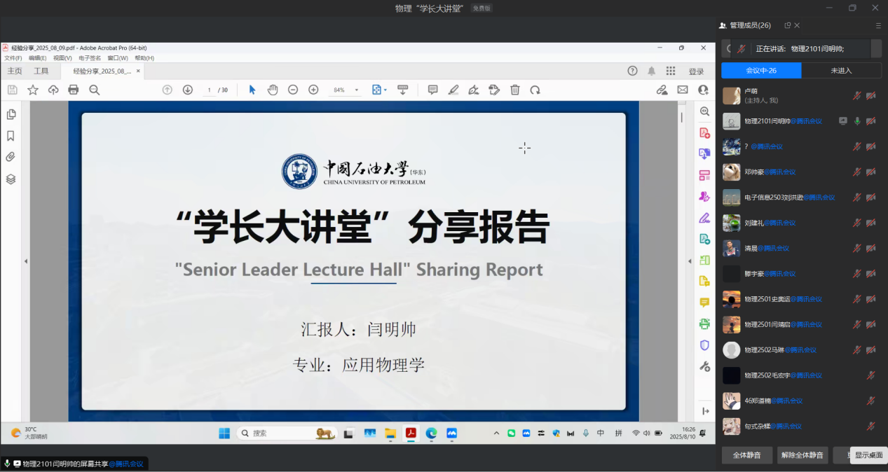 2025年8月10日至8月11日,SUNBET申博2025级理科实验班、数学类、应用物理学、光电信息科学与工程、数据科学与大数据技术五个专业举行了“学长大讲堂”活动,本次活动邀请了2025届员工许嘉星、郭黄涛、李姿萱、闫明帅、刘桂菠、张冰进行经验分享与答疑,2025级辅导员刘威、卢萌、邓帅豪及全体2025级本科生参加。