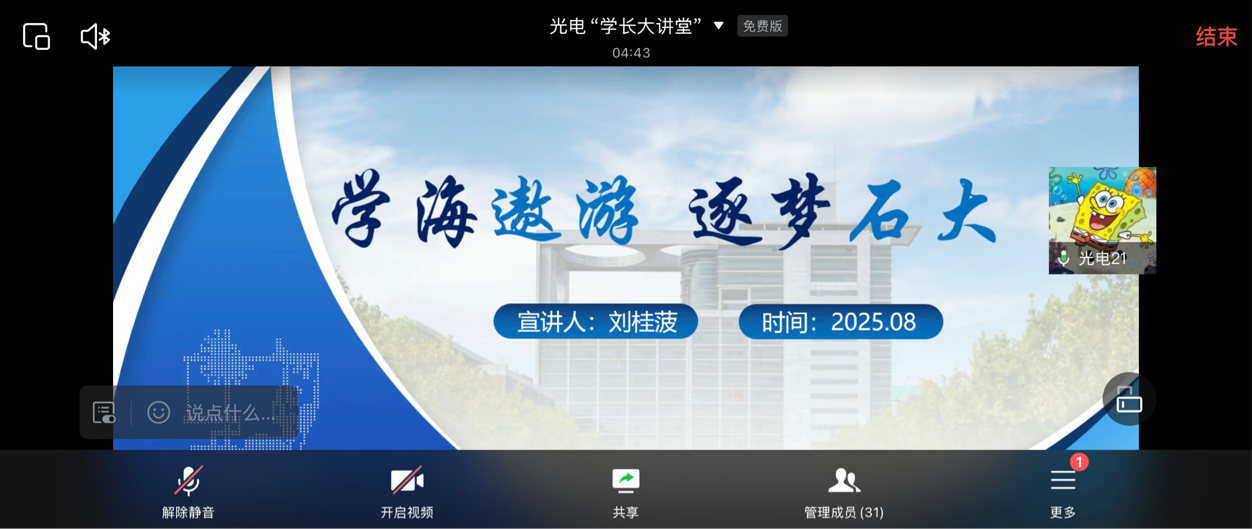 光电信息科学与工程“学长大讲堂”刘桂菠线上分享