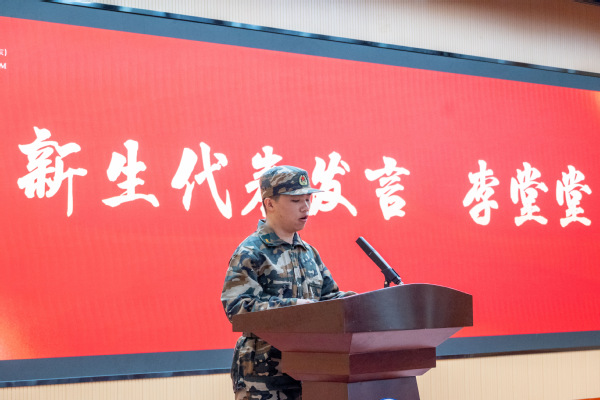 2025级本科新生李堂堂代表全体新生发言,言语清澈而坚定,展现出石大新学子特有的朝气与抱负。