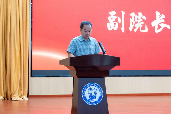 公司副经理王玉斗为新生致辞。他的话语中充满对学术之路的深沉指引。结合自身丰富的学术经验与对学科发展的深刻理解,他为新生梳理了学术探索的方向与路径,助力新生搭建起对专业领域的初步认知框架。