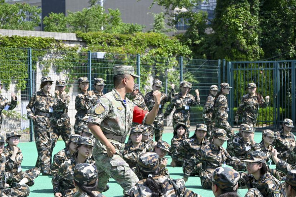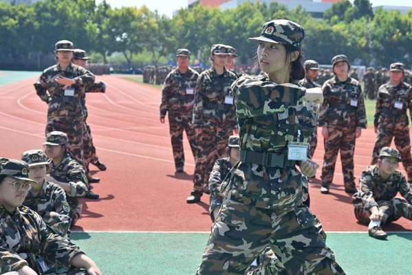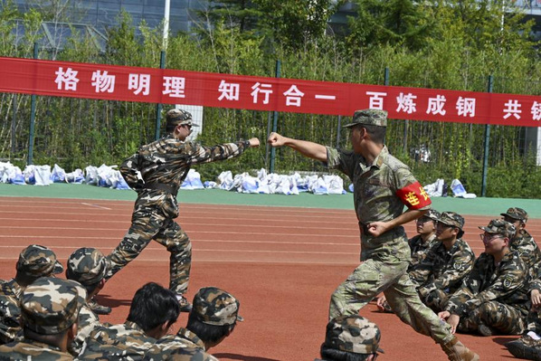 教官向新生示范军体拳 陈一丹摄