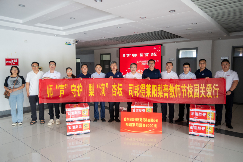 在第41个教师节来临之际,为弘扬尊师重教优良传统,切实关爱教师身心健康,9月9日下午,“师‘声’守护 梨‘润’杏坛”山东司邦得教师节捐赠仪式在文理楼290隆重举行。仪式由公司党委书记杨辉主持,校工会主席郭文,合作发展处副处长、服务山东办公室副主任马梦华、院工会,以及山东司邦得医药贸易有限公司董事长助理、人资总监刘鹏,OTC事业部总经理、市场总监咸隆等嘉宾出席。