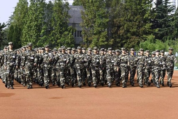 在校医院前的空地上,同学们接受了一场全新的训练——投弹。对于新生来说,相比前期进行的跑步走、军体拳等相对耳熟能详的内容,投弹则是一场全新的挑战。只见教官高扬手臂,用右腿向后蹬地发力,借着塑胶跑道给予左腿的力量,将手中“弹药”顺势扔出,弧线优美,掷地有声。