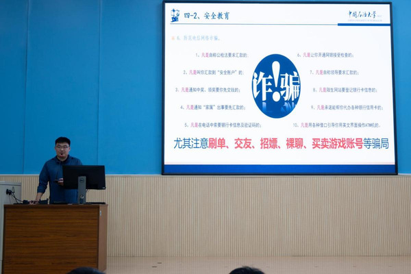 会议最后,辅导员焦佳奇对上学期的成绩情况进行了简要总结,鼓励同学们在新学期要努力学习,不断提升自己的学业成绩。会上还播放了山东省教育厅“开学反诈第一课”视频,辅导员焦佳奇通报典型安全教育案例,强调每位同学进一步树立安全防范意识,严防网络电信诈骗,做好人身财产安全、交通安全和假期安全。