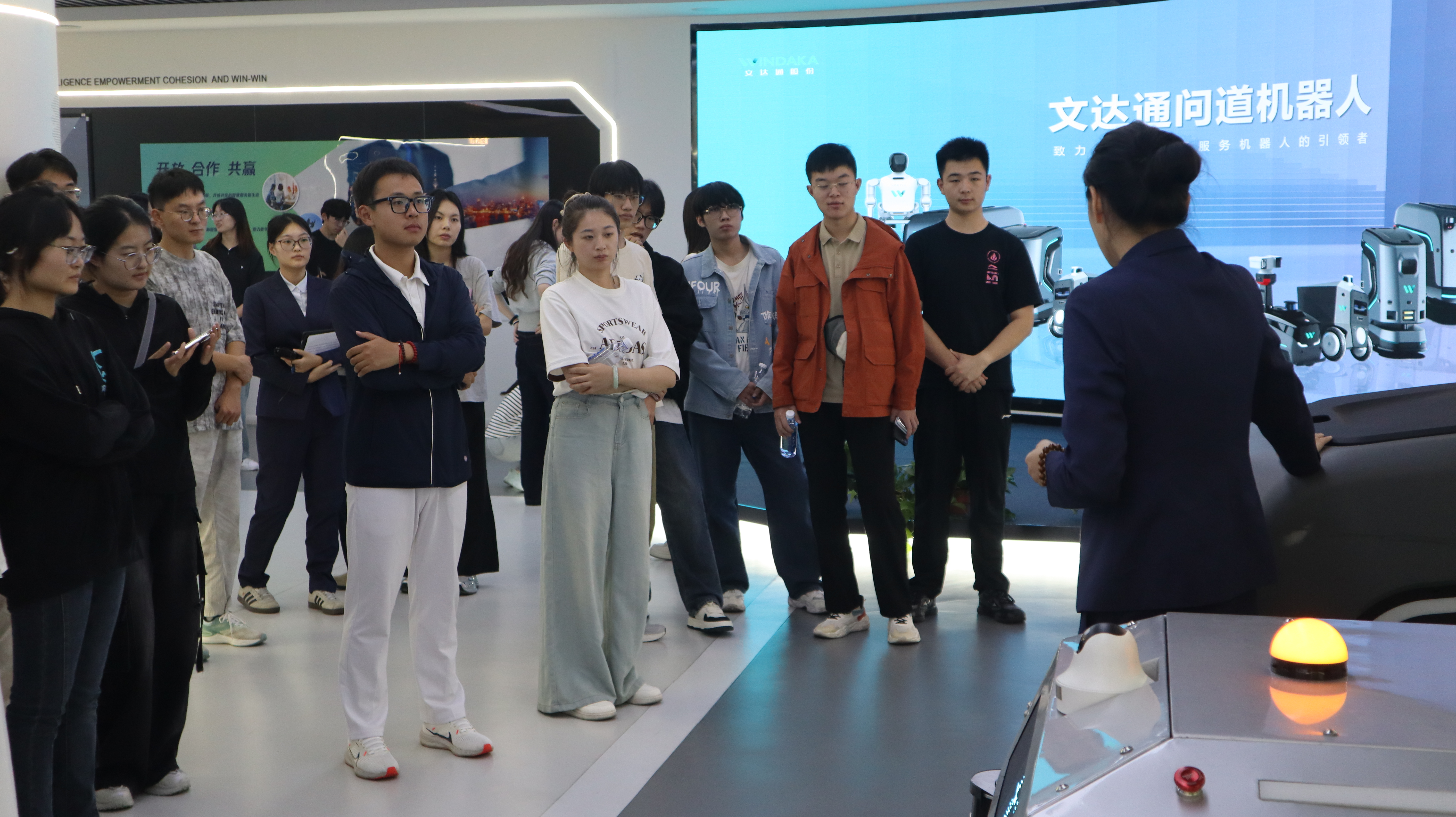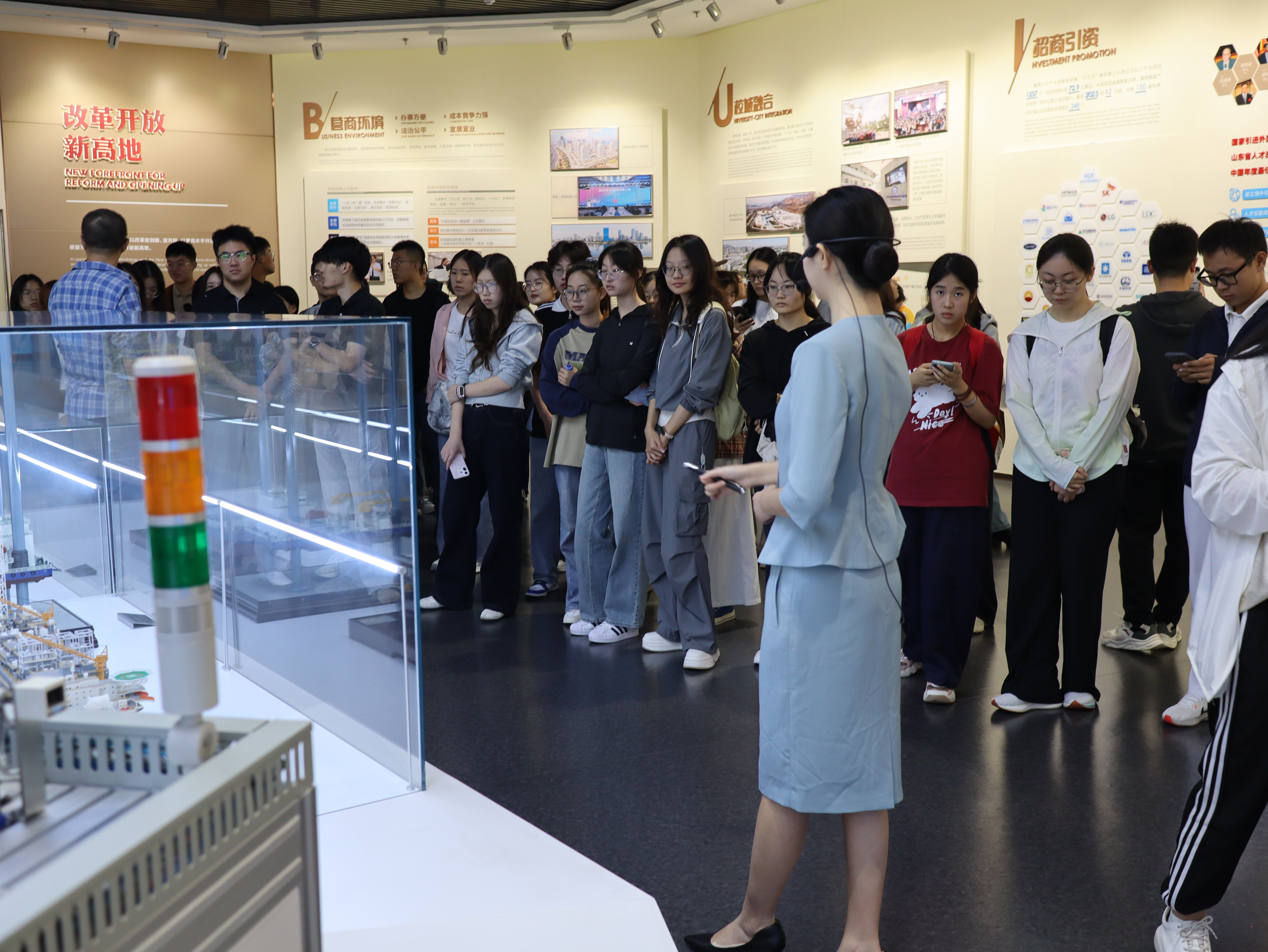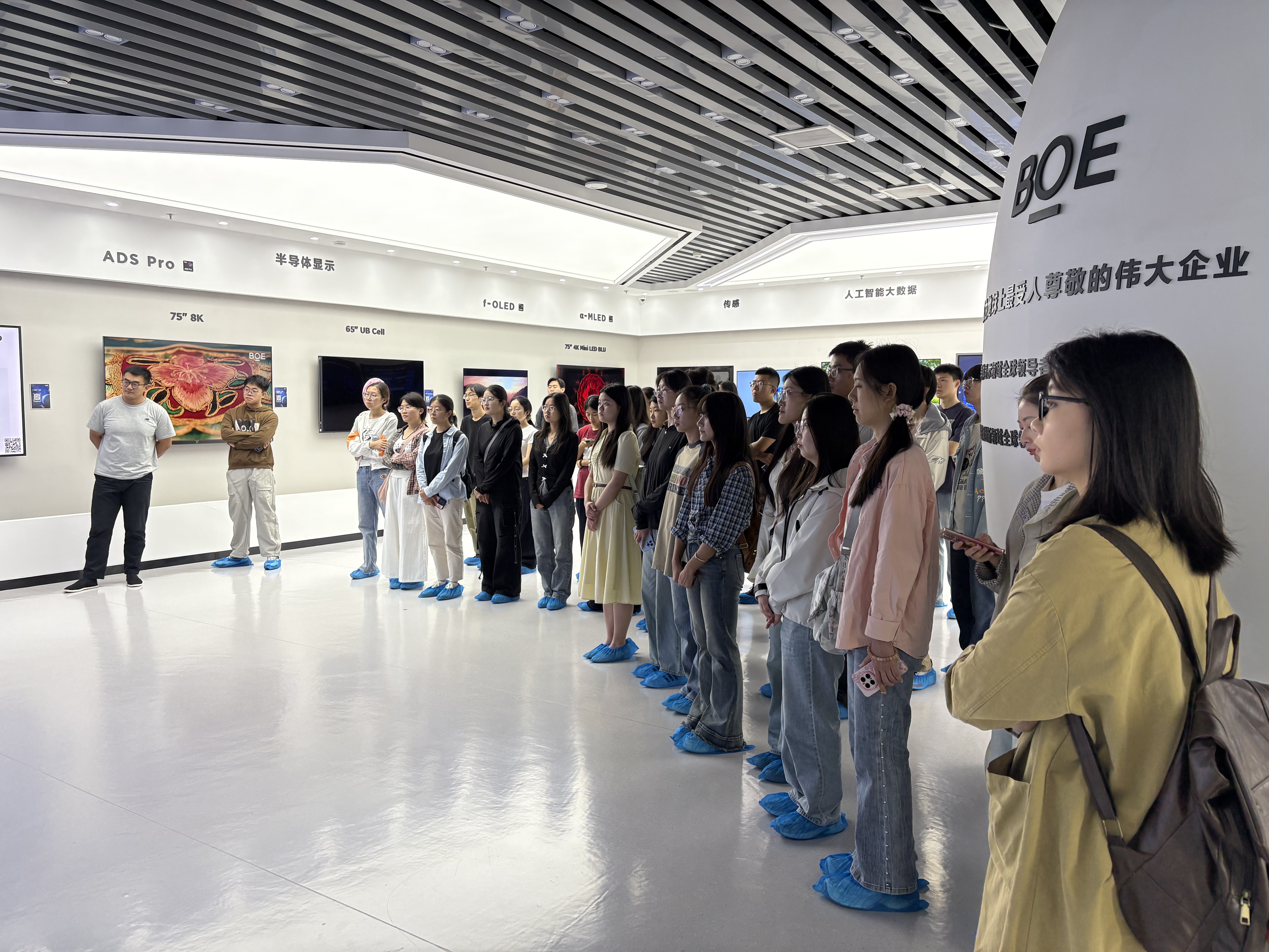 在“城市之窗”展览馆,师生通过“风从海上来”主题展陈,系统了解了新区的发展历程、九大重点产业链布局及未来规划。在京东方光电科技有限公司,全体师生近距离观摩显示科技的前沿成果,感知智能制造的企业文化与创新实力。