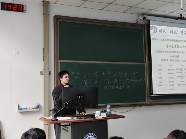 陈俊名围绕“特色活动与特色建设”展开分享,深入探讨了团支部品牌塑造与问题解决的创新思路。他强调,各团支部应立足理科专业特色,深入挖掘成员兴趣特长,找准自身定位与发展方向。在特色活动打造方面,他分享了“实验室开放日”等品牌活动的策划与执行细节,展现了如何将专业元素融入团建活动,在提升活动的吸引力的同时强化支部的辨识度。针对新生团支部普遍面临的“成员积极性难以持续”、“资源整合有限”等现实困境,他提出了切实可行的解决方案,如建立激励机制、推行项目制管理、搭建跨年级协作平台等,为与会团团支部书记提供了即学即用的工作方法。