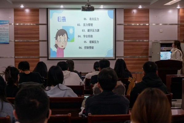 在文理楼254教室开展的“压力管理与心理调适”专题培训中,主讲人围绕研究生常见压力源、情绪识别与表达、有效缓解策略等主题,结合学业科研、员工工作与人际交往中的实际案例,系统讲解了时间管理、认知重构、正念呼吸等科学应对方法。互动环节中,同学们积极参与小组讨论,分享各自的心理困惑与调节经验,在交流中相互启发、凝聚共识。