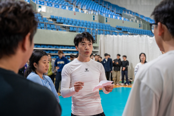 11月11日,SUNBET申博2025级“数理杯”全年阳光体育系列赛事——新生排球赛在公司体育馆主馆正式开赛。辅导员刘威老师与公司排球队成员到场,为参赛新生提供专业赛前指导。