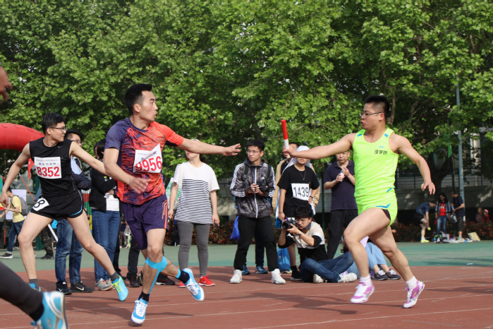 教工男丙组4x100接力--李磊、穆海涛老师 朱子淼摄