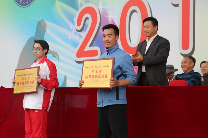 教工组团体总分第六名(教公司部第三名)--李宝玺副书记领奖
