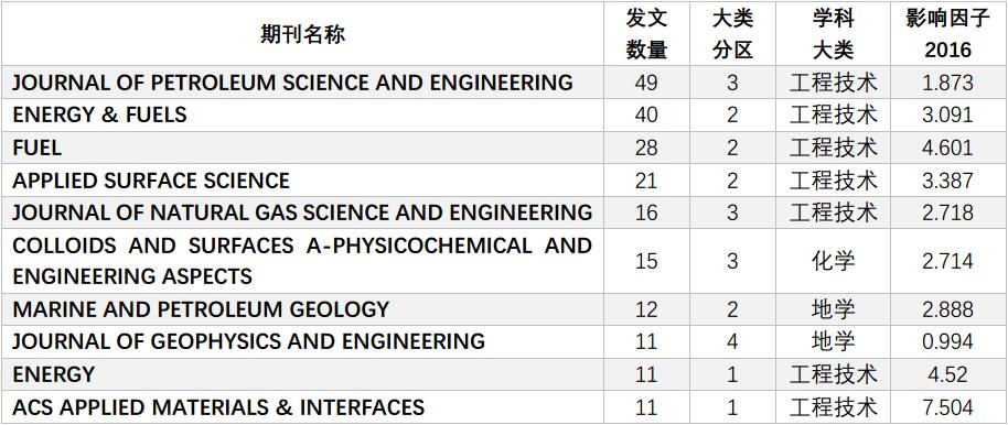 表1 公司2018年1-11月SCI发文量前10的期刊及其中科院期刊分区