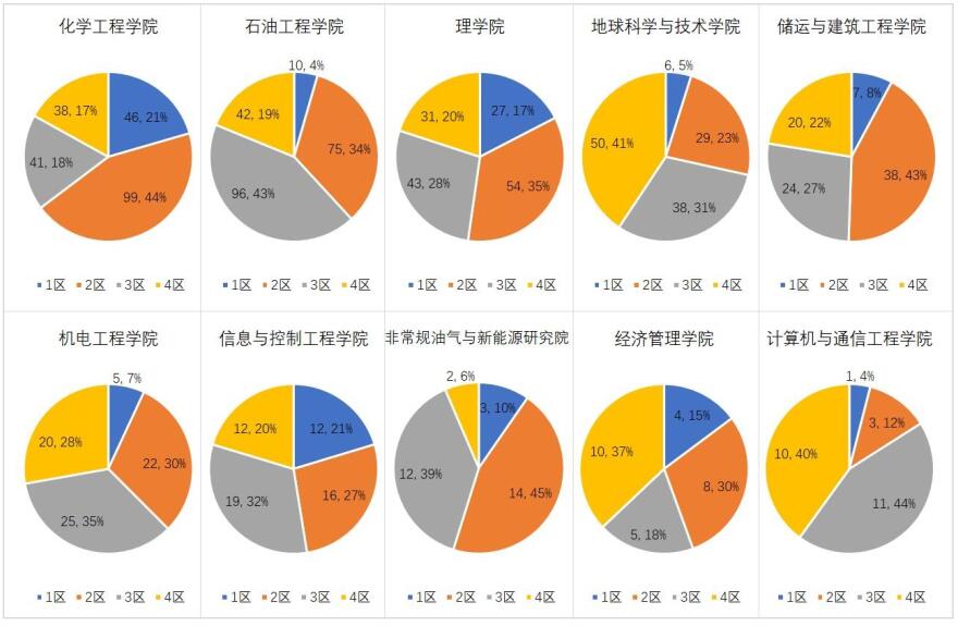 说明:上图中数据为论文篇数及其所占比例,如化学工程公司1区论文46篇,占比21%