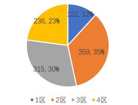 注:图1中数据为论文篇数及其所占比例,如1区论文122篇,占比12%