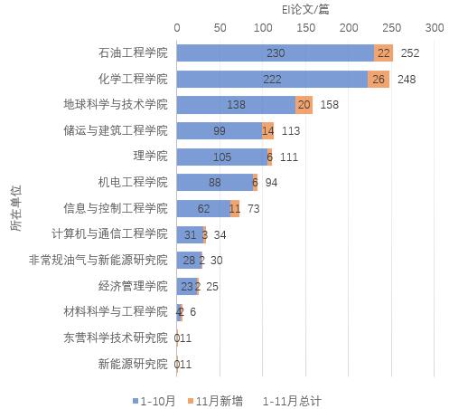 图3 公司2018年1-11月各单位EI论文发文量统计