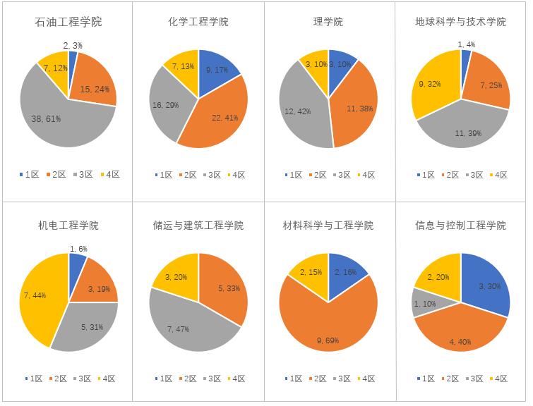 图中数字为论文篇数,占比。例如石油工程公司1区论文2篇,占比3%